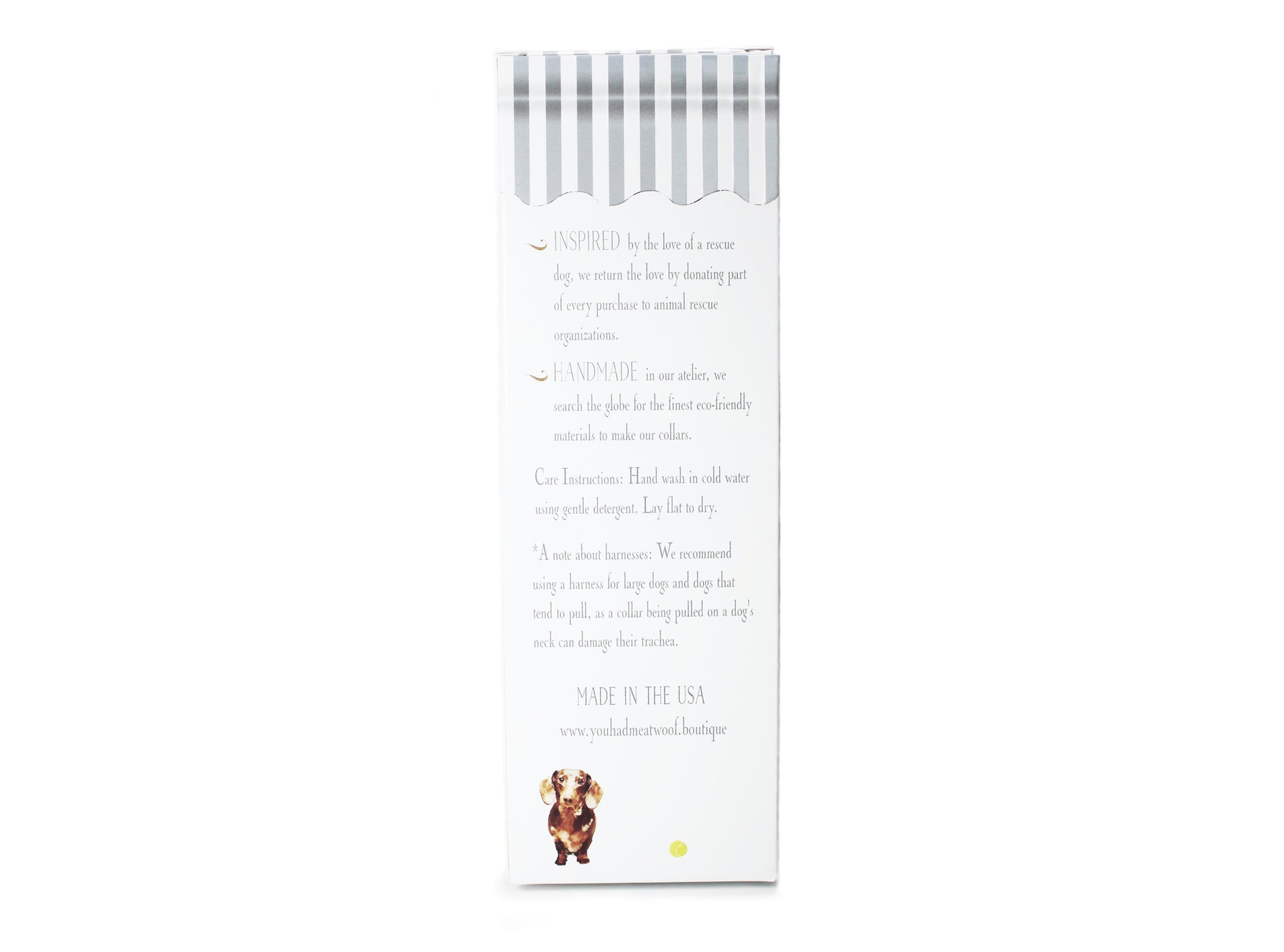 All dog collars, leashes, and bandanas are lovingly handmade in my studio. My current turnaround time is noted at the top of the home page. Please allow 7 additional business days for engraving.